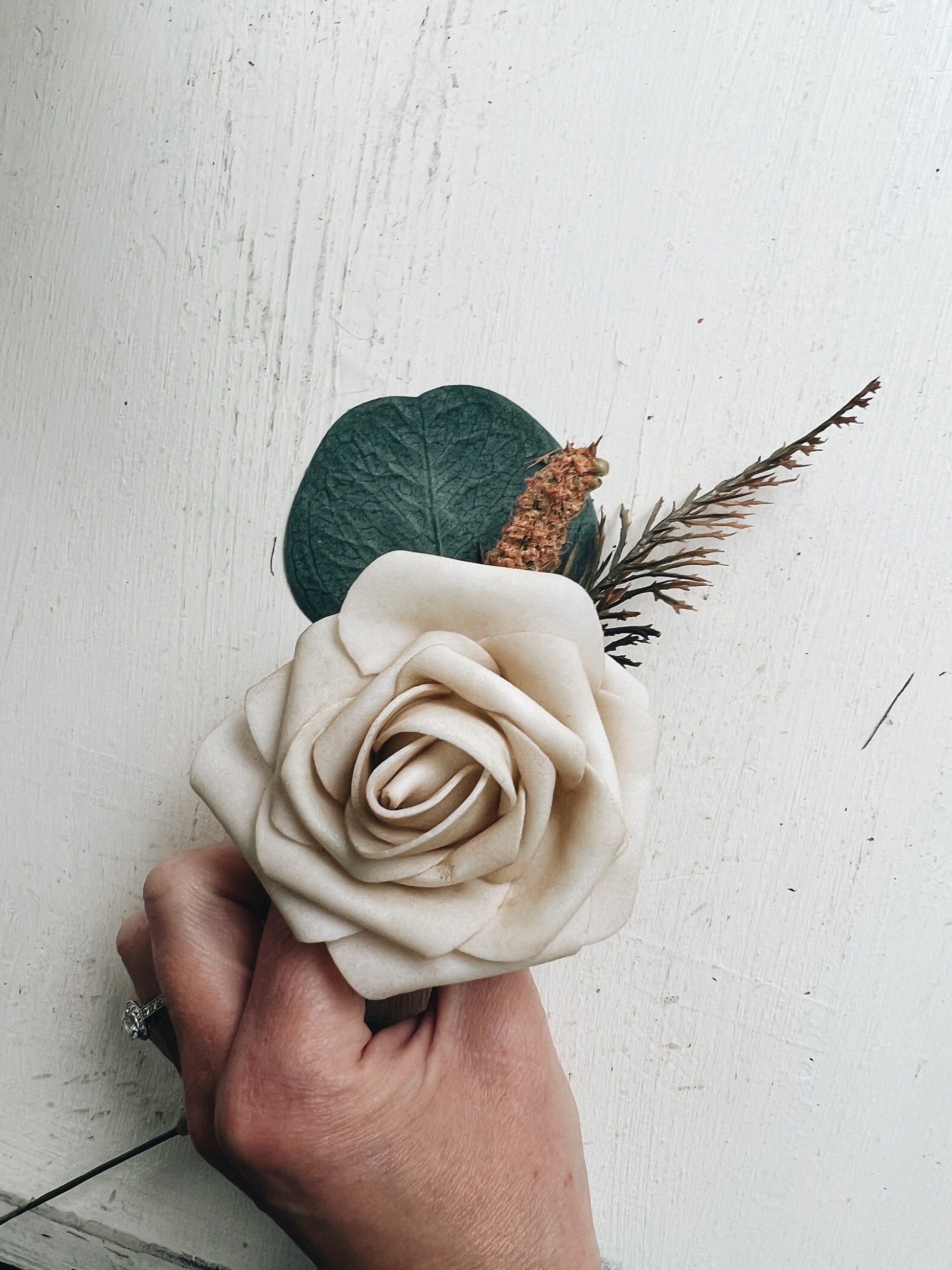 Crafted with quality and longevity in mind, these artificial florals will remain fresh and vibrant, creating a lasting memento of your wedding day. The rust orange and beige taupe tones are a perfect match for any fall color scheme, adding a touch of elegance to your bridal ensemble.